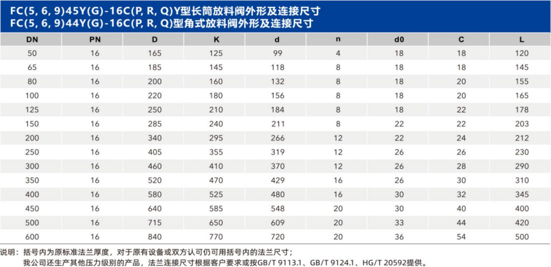 长筒放料阀技术参数: